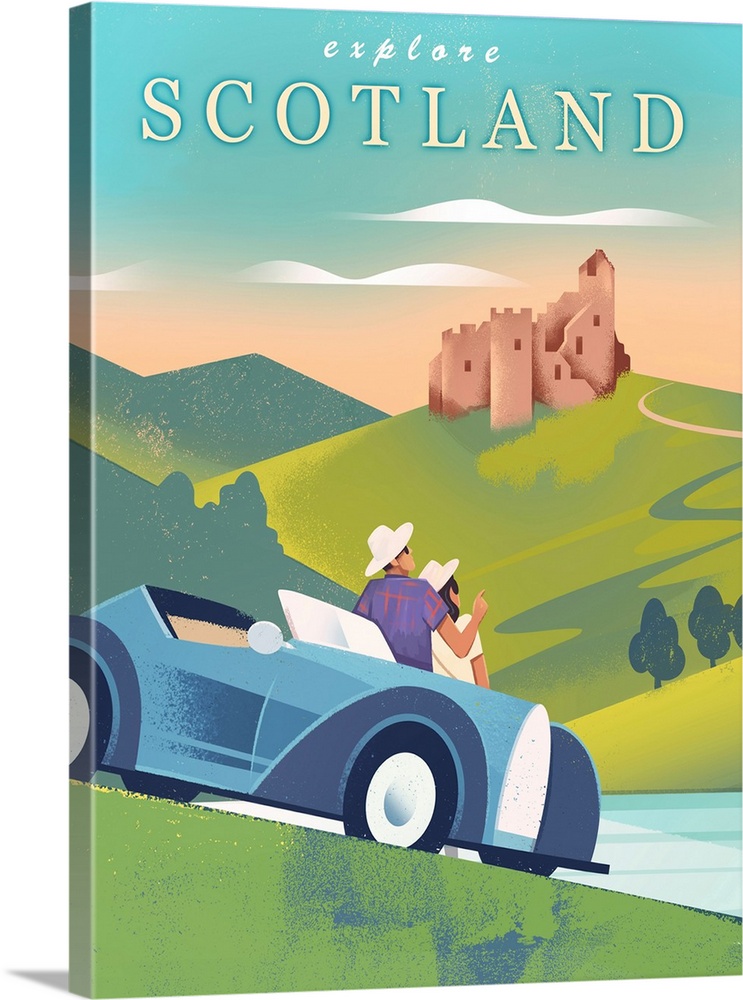 Art Decorative Art Graphic Art Green Wall Art Landscapes Castle Scotland Transportation Car Travel Posters Contemporary Travel Posters Martin Wickstrom