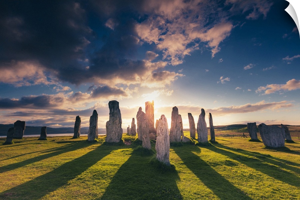 <p>United Kingdom, Scotland, Great Britain, British Isles, Lewis and Harris, Callanish stone circle in the Outer Hebrides at sunset</p>