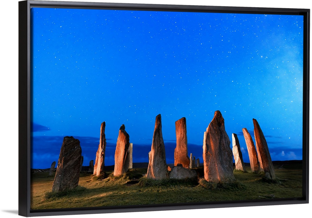 <p>United Kingdom, Scotland, Great Britain, British Isles, Lewis and Harris, Callanish stone circle in the Outer Hebrides by night</p>