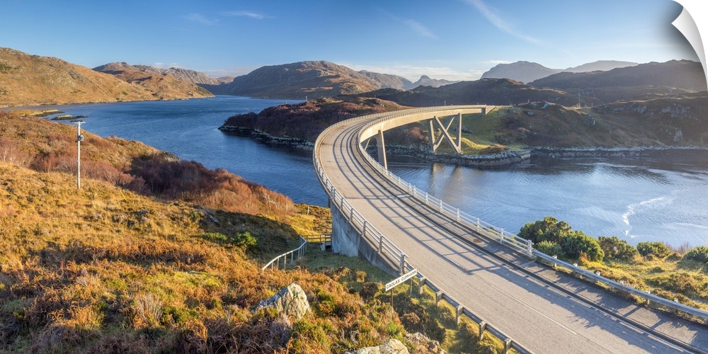 <p>UK, Scotland, Highland, Sutherland, Loch a' Chairn Bhain, Kylesku, Kylesku Bridge, a landmark on the North Coast 500 Tourist Route.</p>