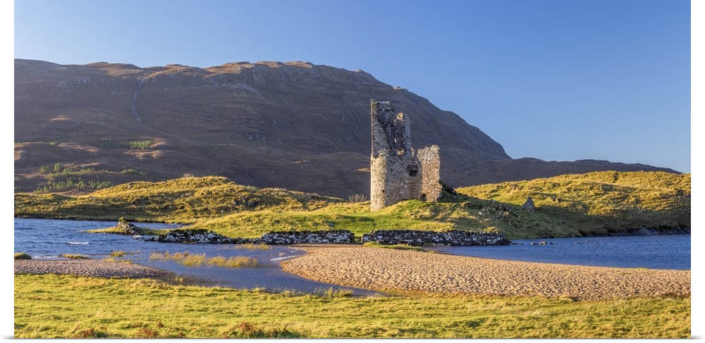 <p>UK, Scotland, Highland, Sutherland, Lochinver, Loch Assynt, Ardvreck Castle.</p>