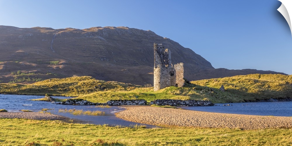 <p>UK, Scotland, Highland, Sutherland, Lochinver, Loch Assynt, Ardvreck Castle.</p>