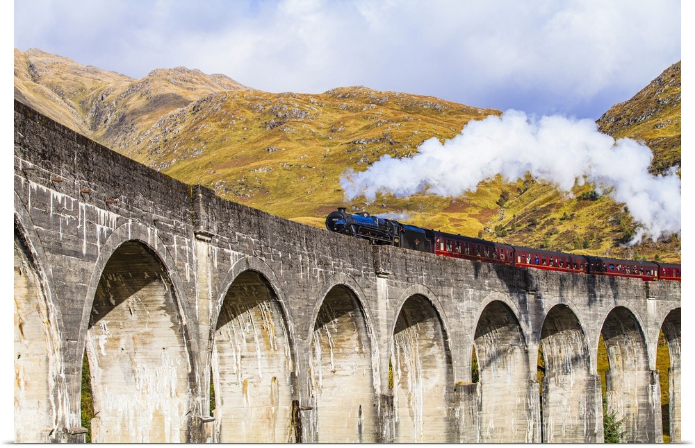 <p>Scotland, Highland, Glenfinnan, Great Britain, British Isles, The Jacobite steam train on the Glenfinnan viaduct which inspired the Harry Potter Hogwarts Express</p>
