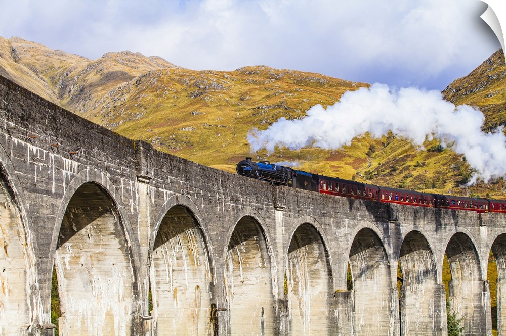 <p>Scotland, Highland, Glenfinnan, Great Britain, British Isles, The Jacobite steam train on the Glenfinnan viaduct which inspired the Harry Potter Hogwarts Express</p>