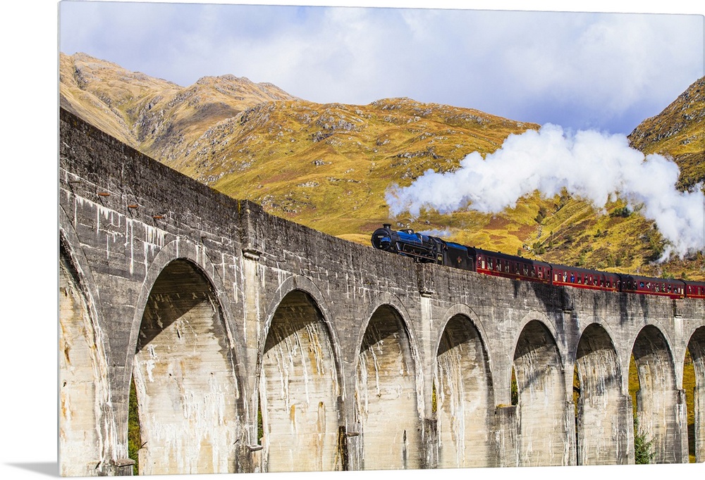 <p>Scotland, Highland, Glenfinnan, Great Britain, British Isles, The Jacobite steam train on the Glenfinnan viaduct which inspired the Harry Potter Hogwarts Express</p>
