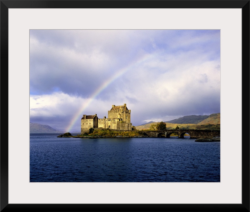 <p>Scotland, Highland, Wester Ross, Eilean Donan Castle. A rainbow frames beautiful Eilean Donan Castle in the Highland of Scotland.</p>