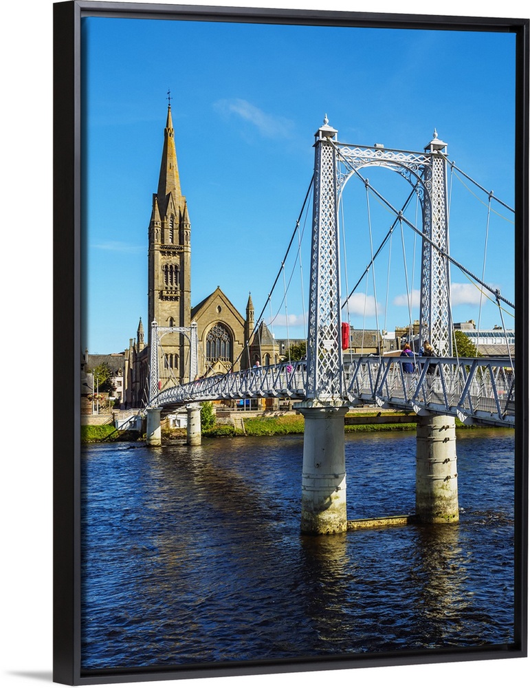 <p>UK, Scotland, Inverness, View of the Greig St Bridge and the Free North Church.</p>