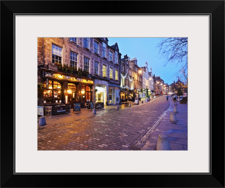 <p>UK, Scotland, Lothian, Edinburgh, Twilight view of the Black Bull Pub and the Grassmarket.</p>