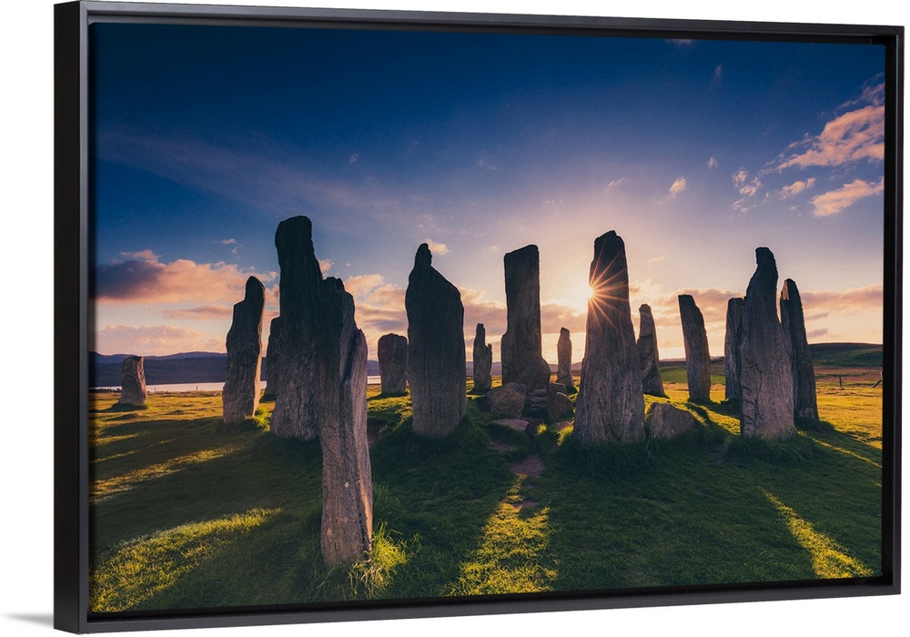 <p>United Kingdom, Scotland, Outer Hebrides, Lewis and Harris, Great Britain, British Isles, Callanish stone circle at sunset</p>