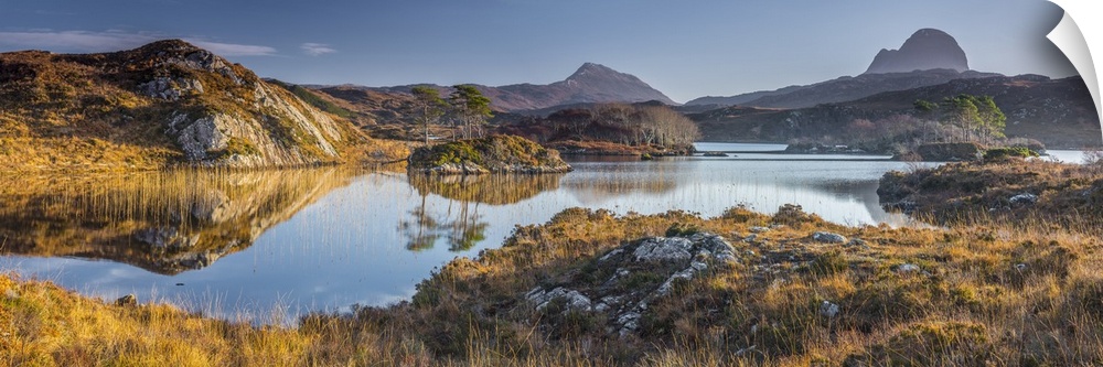 <p>UK, Scotland, Highland, Sutherland, Lochinver, Loch Druim Suardalain, Mount Canisp (centre) and Mount Suilven (right).</p>
