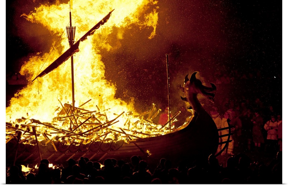 <p>Scotland, Shetland Islands, Lerwick. The spectacular burning of the Galley after the night torch procession.</p>