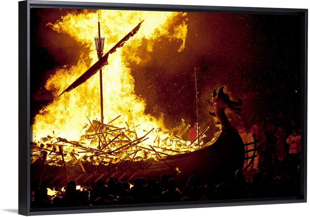 <p>Scotland, Shetland Islands, Lerwick. The spectacular burning of the Galley after the night torch procession.</p>