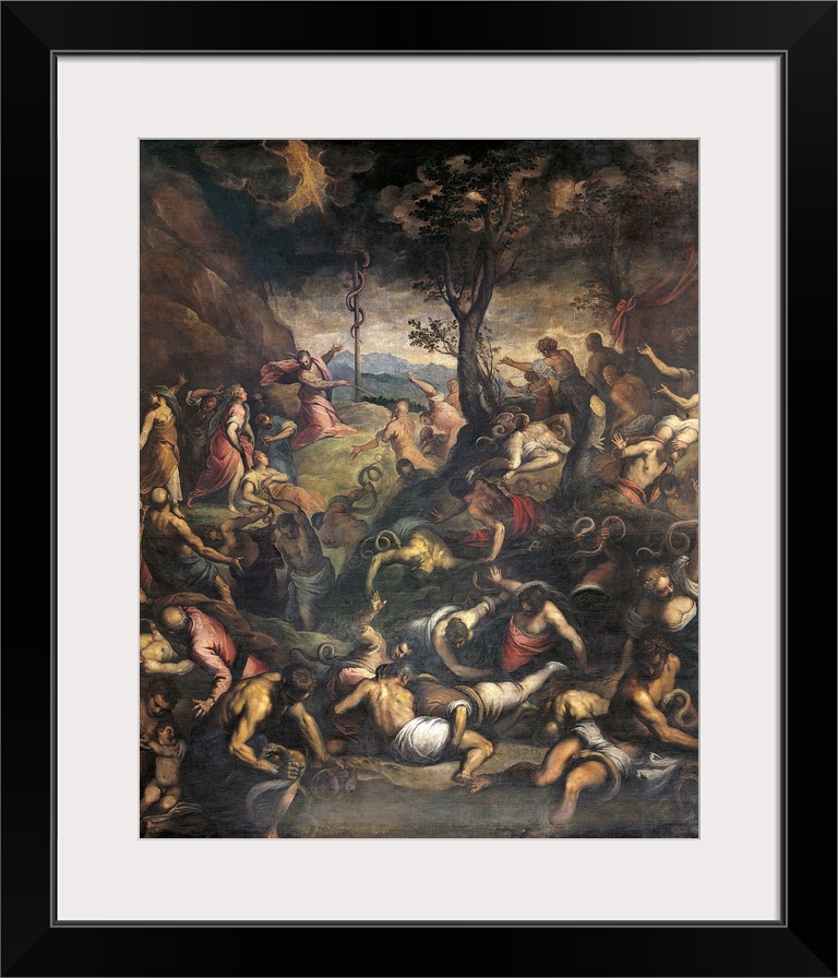 <p>The Scourge of the Serpents, by Jacopo Negretti known as Palma the Younger, 1595 - 1600 about, 16th Century, canvas, cm 529 x 490 - Italy, Veneto, Venice, San Bartolomeo Church. All. Sore snakes men women tangle snakes stick Moses. (227440) Everett Collec</p>