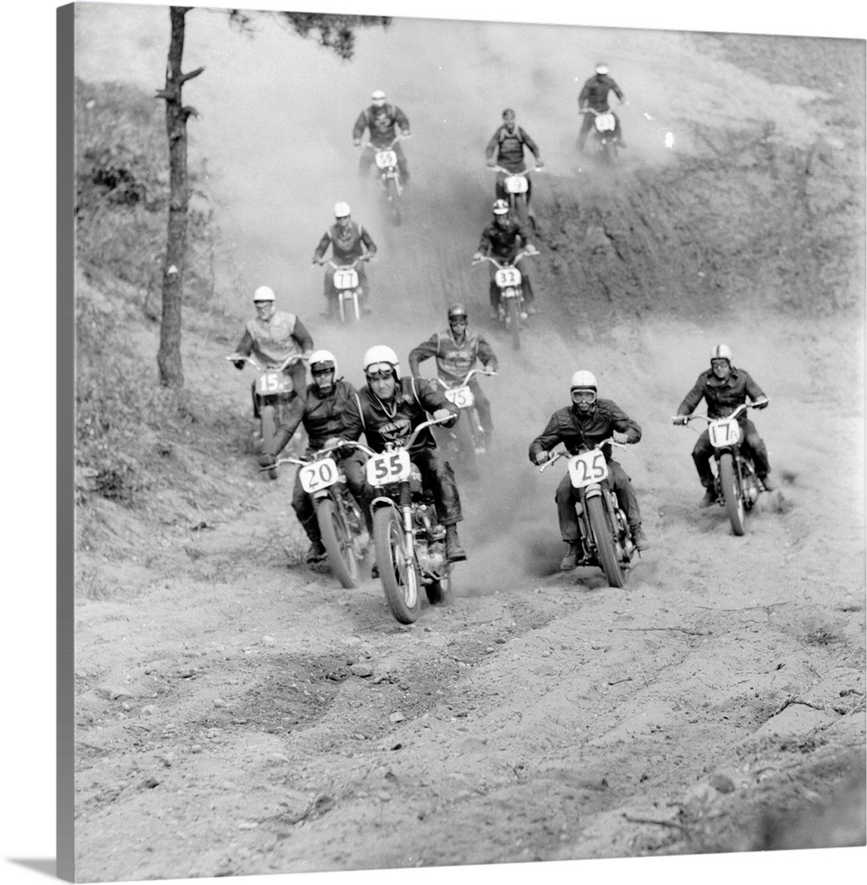 <p>circa 1955: A motorcross scrambling race in progress at the Suffolk County Motor Club in Chatham, New York</p>