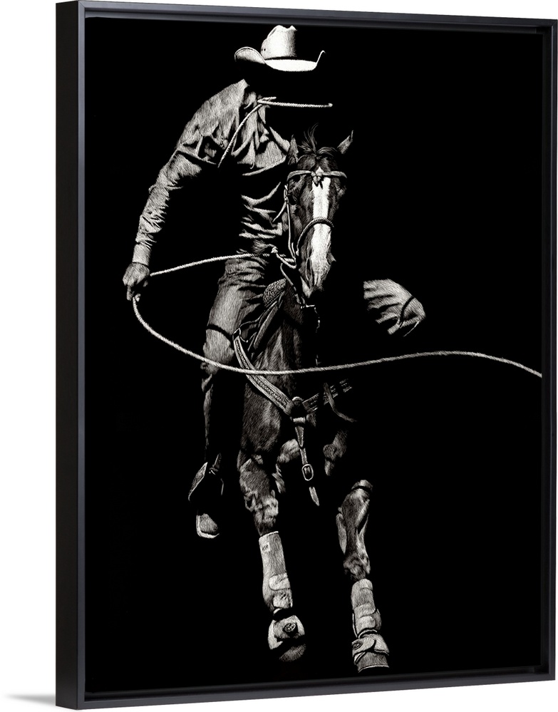 Art Black and White Wall Art Julie Chapman Contemporary Art Out West Drawing People Cowboys Sports Rodeo Wildlife Horse