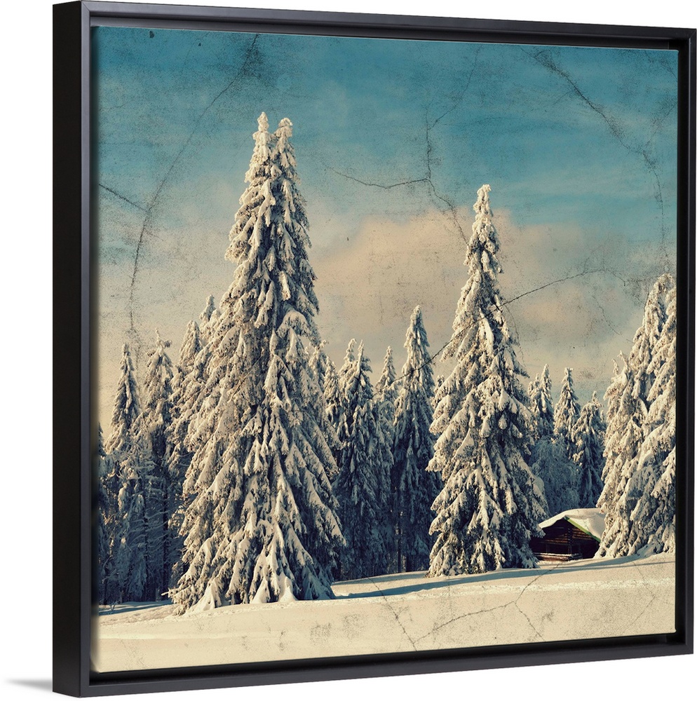 <p>A chalet surrounded by fir trees under the snow. Finished with a photo texture</p>
