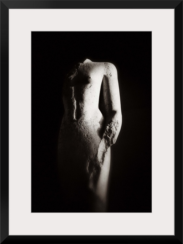 <p>A black and white creative photograph of a ruined statue of an unknown person. Karnak Temple, Egypt.</p>