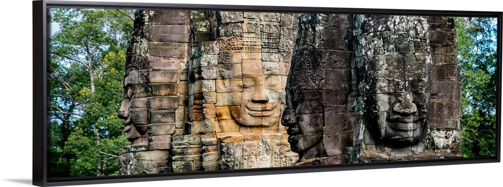<p>Sculptures at bayon temple, angkor thom, angkor, cambodia.</p>