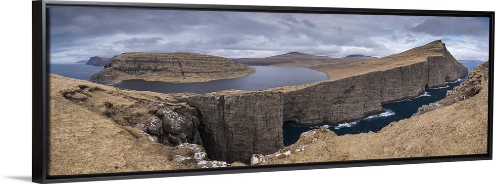 <p>Panorama of the dramatic sea cliffs near Sorvagsvatn lake on the island of Vagar, Faroe Islands, Denmark, Europe. Spring (April) 2016.</p>