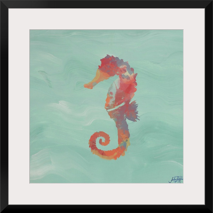 Art Beach House Décor Decorative Art Julie DeRice Green Wall Art Painting Wildlife Marine Life Seahorse