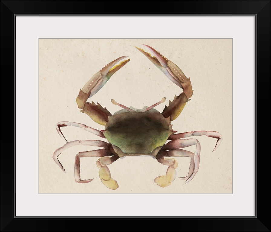 <p>Contemporary watercolor painting of a crustacean against a neutral background.</p>