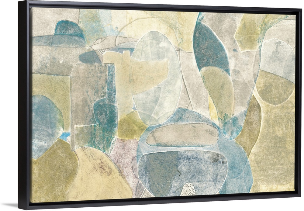 <p>Contemporary abstract art in organic tan and blue shapes.</p>