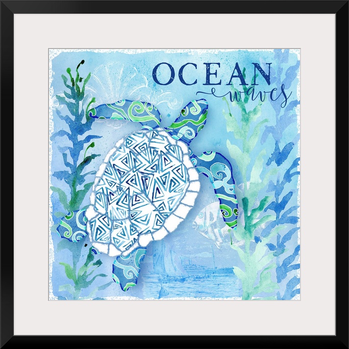 Art Coastal Beach House Décor Blue Wall Art Decorative Art Graphic Art Audrey Jeanne Roberts Wildlife Marine Life Turtle