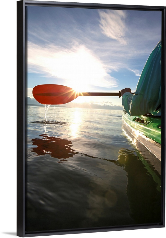 <p>Evening sea kayaking in Lynn Canal near Eagle Beach State Recreation Area, Juneau, Alaska, Chilkat Mountains beyond in the distance.</p>