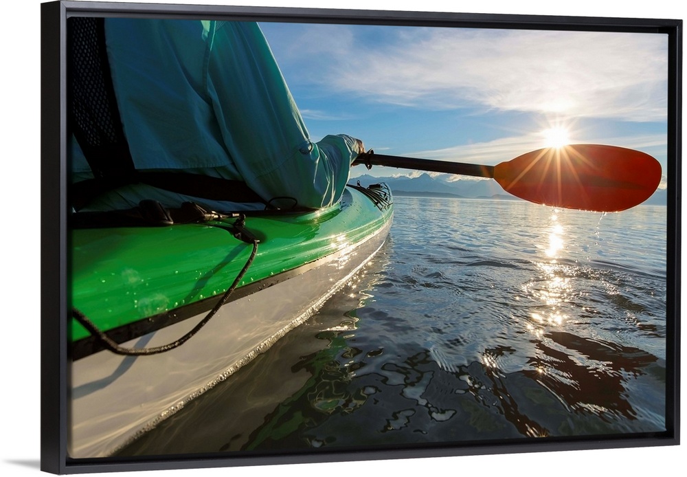 <p>Evening sea kayaking in Lynn Canal near Eagle Beach State Recreation Area, Juneau, Alaska, Chilkat Mountains beyond in the distance.</p>