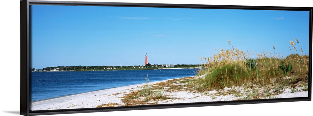 <p>Sea oat grass on beach with Ponce de Leon Inlet Lighthouse in the background, Smyrna Dunes Park, Volusia County, Florida, USA</p>