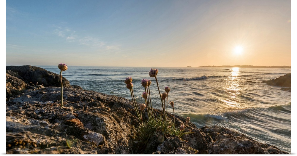 <p>Sea pink (Armeria maritima) wildflowers on Long Beach, Pacific Rim National Park Reserve, Vancouver Island, British Columbia, Canada</p>