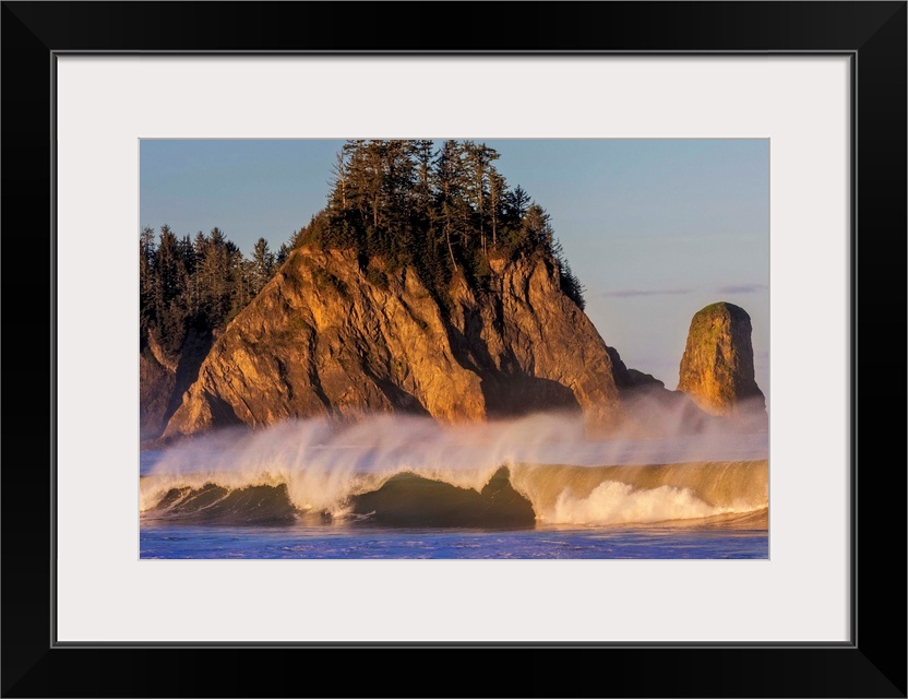 <p>Sea stacks and waves at first light on Rialto Beach in Olympic National Park, Washinton, USA</p>