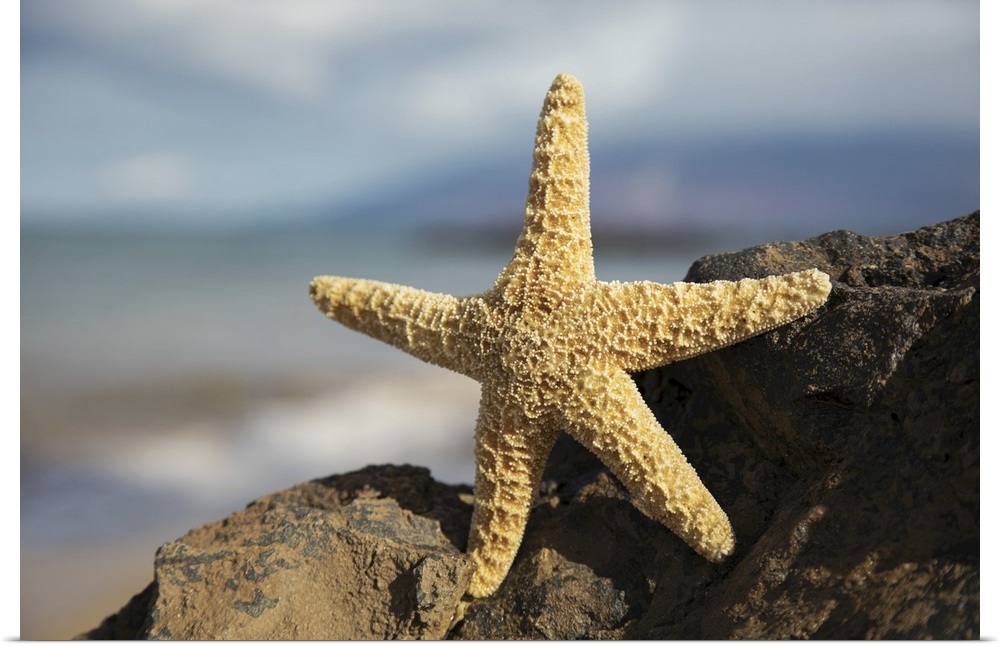<p>Sea star on lava rock with ocean, Maui, Hawaii, united states of America.</p>