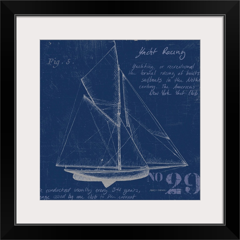 Art Coastal Beach House Décor Blueprints Blue Wall Art Decorative Art Marco Fabiano Graphic Art Sailing Sailboat