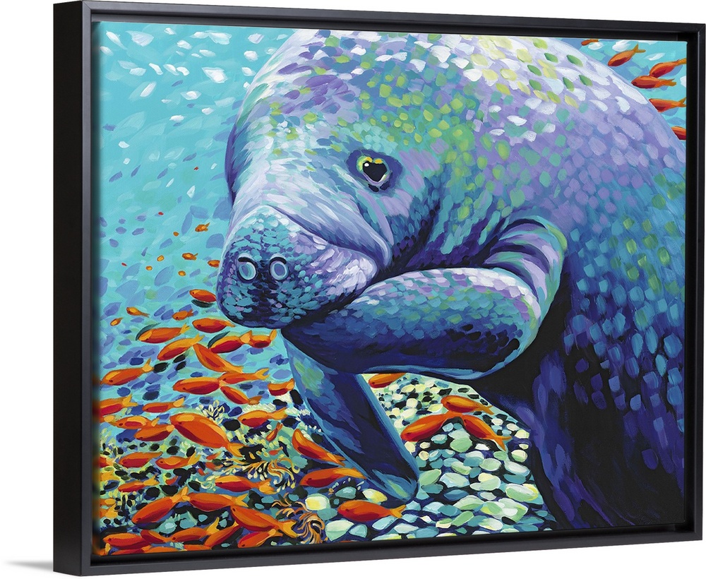 Art Blue Wall Art Contemporary Art Painting Carolee Vitaletti Wildlife Marine Life Manatee