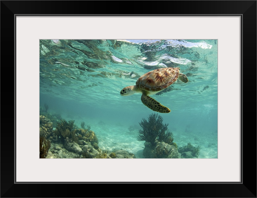 <p>Green sea turtle over coral reef underwater in Akumal, riveria Maya, Mexico.</p>