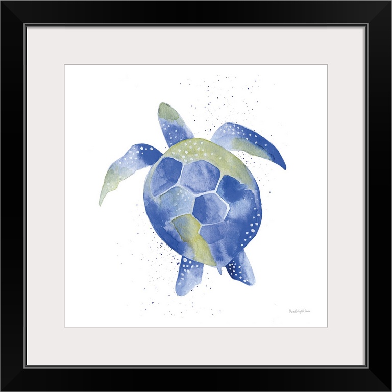 Art Coastal Blue Wall Art Mercedes Lopez Charro Decorative Art Painting Watercolor Wildlife Turtle