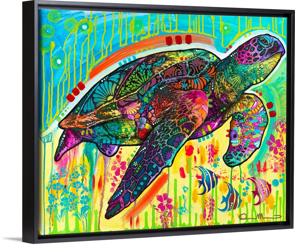 Art Blue Wall Art Contemporary Art Wildlife Mixed Media Art Dean Russo Wildlife Marine Life Turtle