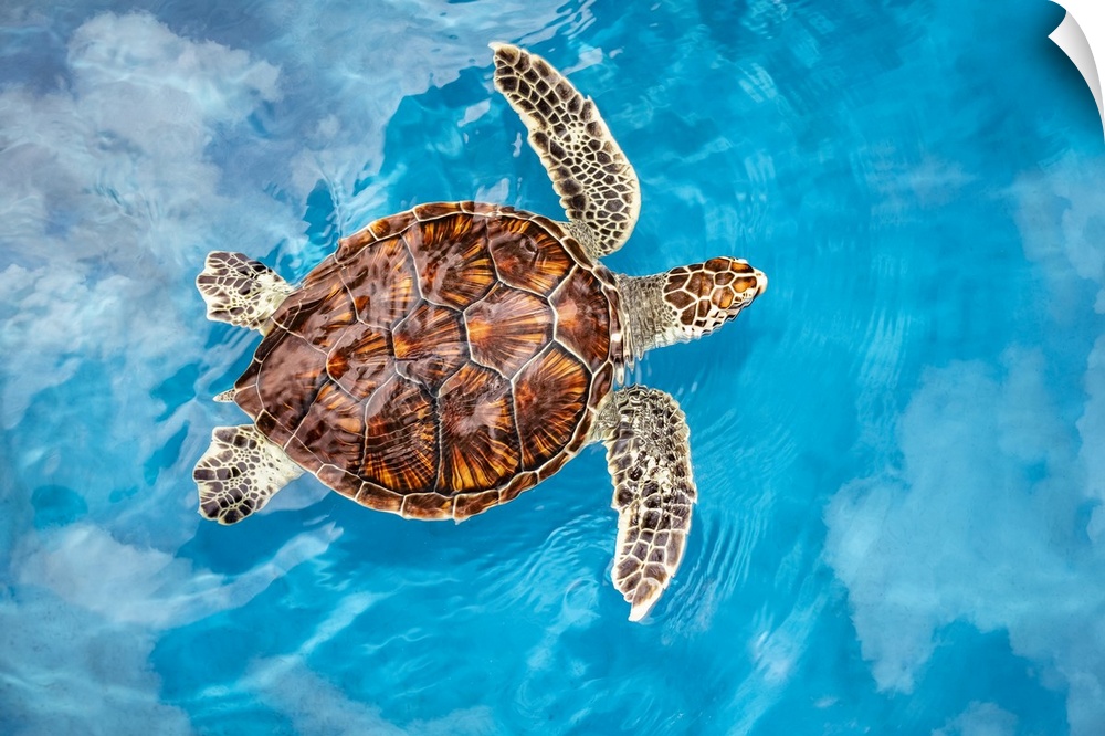 <p>A young green sea turtle (Chelonia mydas), an endangered species, with a very clean shell, just below the surface; Maui, Hawaii, United States of America</p>