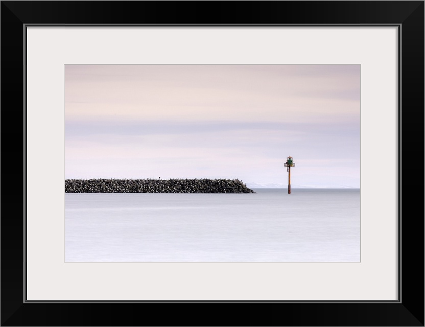 <p>Seabirds resting on stone breakwater, near Rif, Snaefellsnes Peninsula, Iceland.</p>