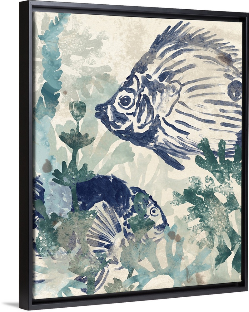 Art Blue Wall Art Decorative Art Marine Plants Painting June Erica Vess Watercolor Wildlife Fish