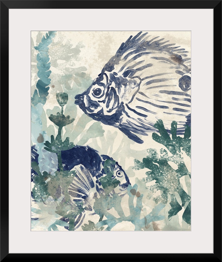 Art Blue Wall Art Decorative Art Marine Plants Painting June Erica Vess Watercolor Wildlife Fish