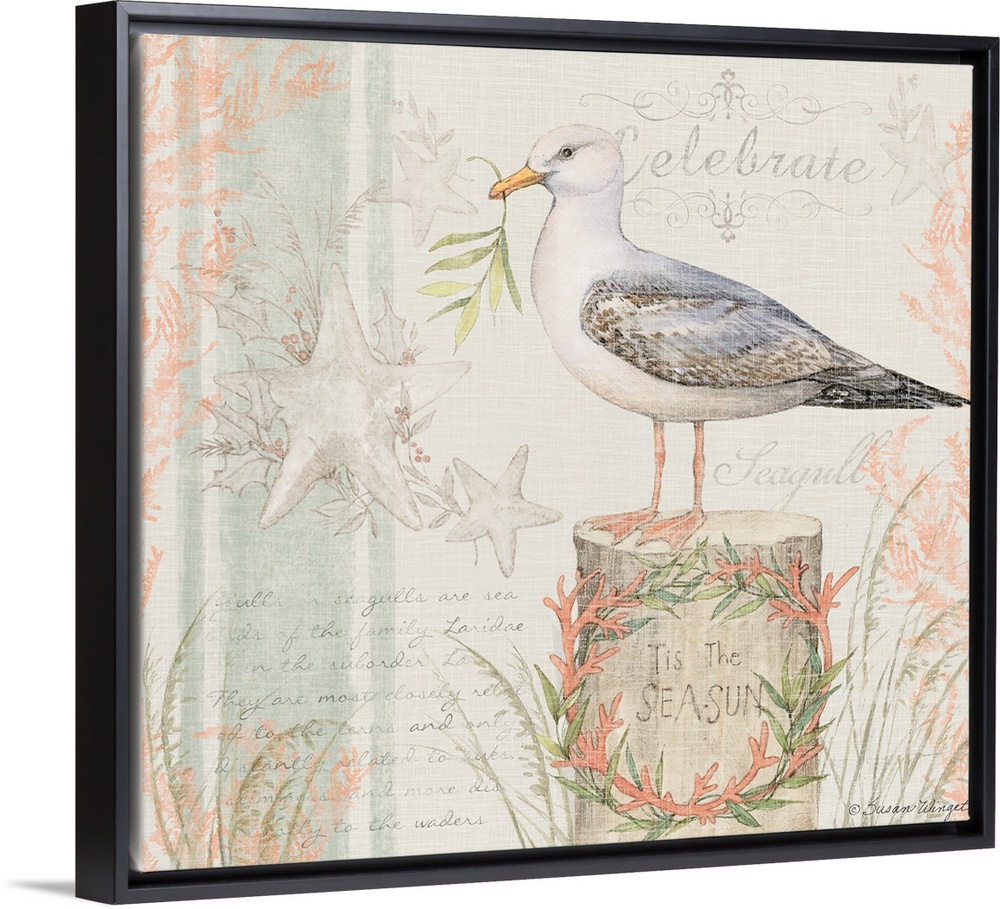 <p>This seagull in a lovely watercolor scene brings the coast into your home.</p>