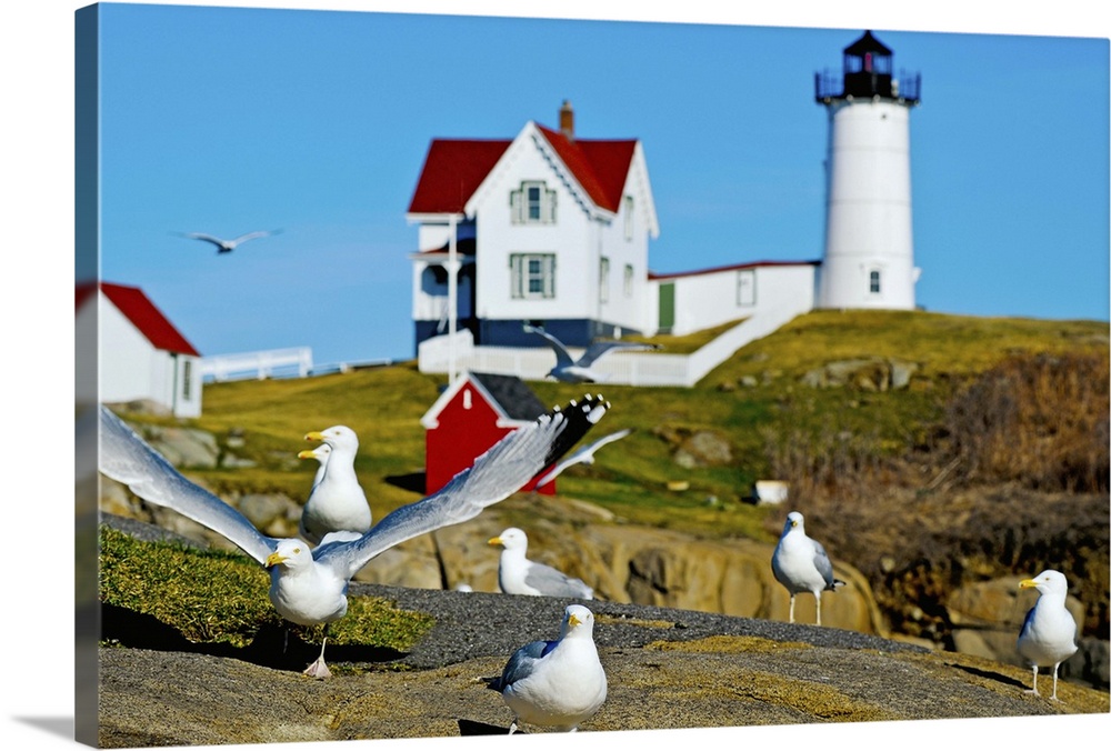 Seagulls at Nubble Lighthouse, Cape Neddick, York, Maine