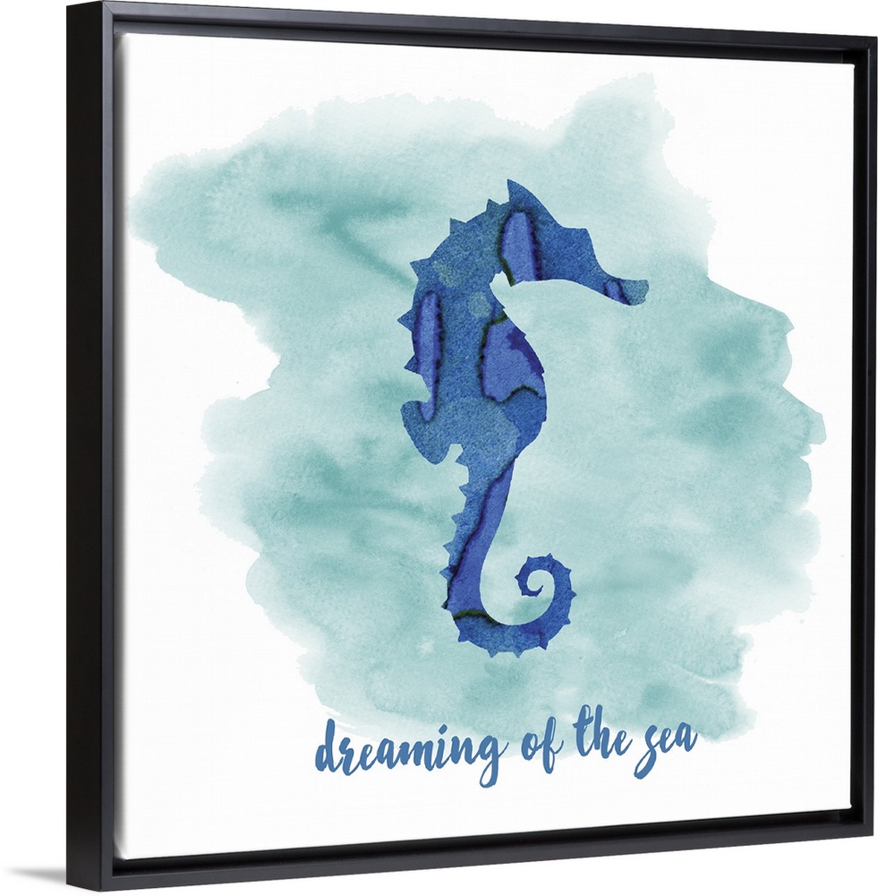 <p>Contemporary watercolor coastal decor of a seahorse.</p>