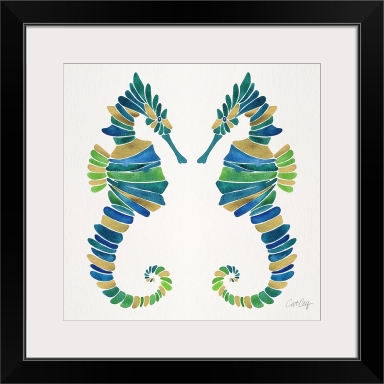 Art Blue Wall Art Cat Coquillette Decorative Art Painting Watercolor Wildlife Marine Life Seahorse