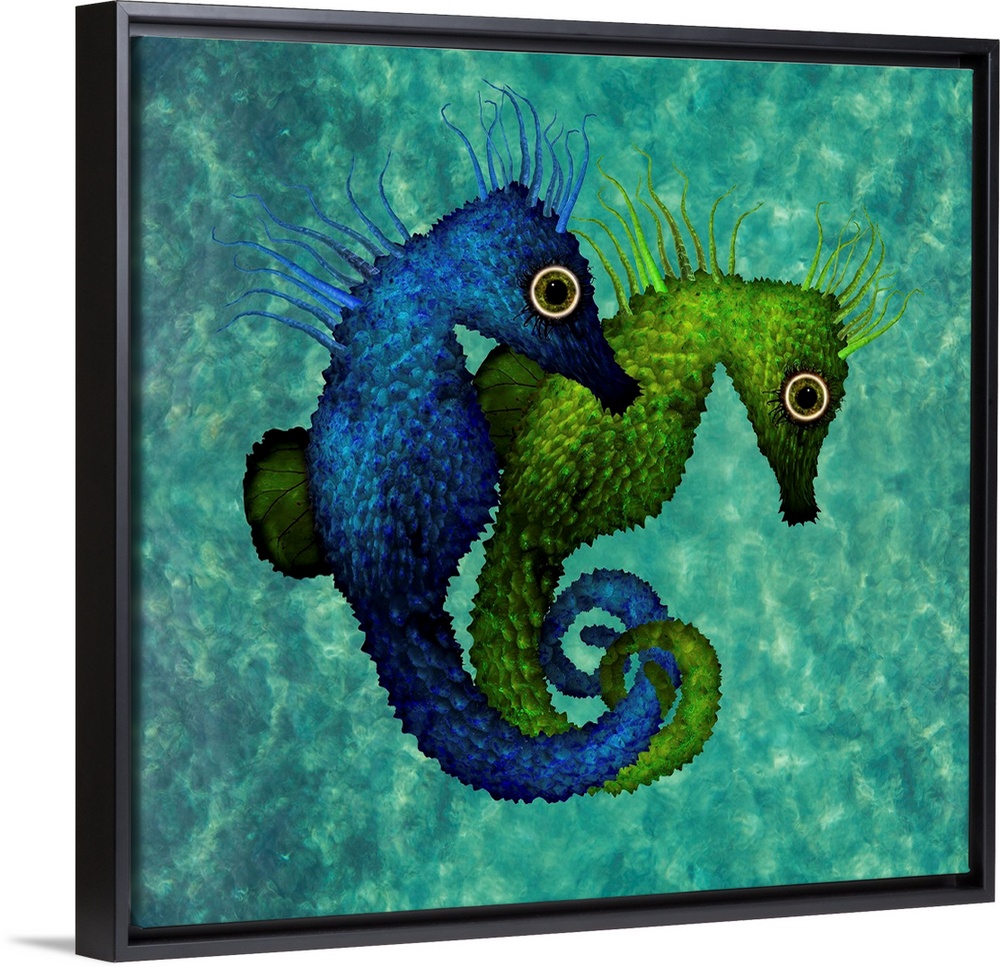 <p>These two beautiful seahorses live together in the beautiful blue ocean.</p>