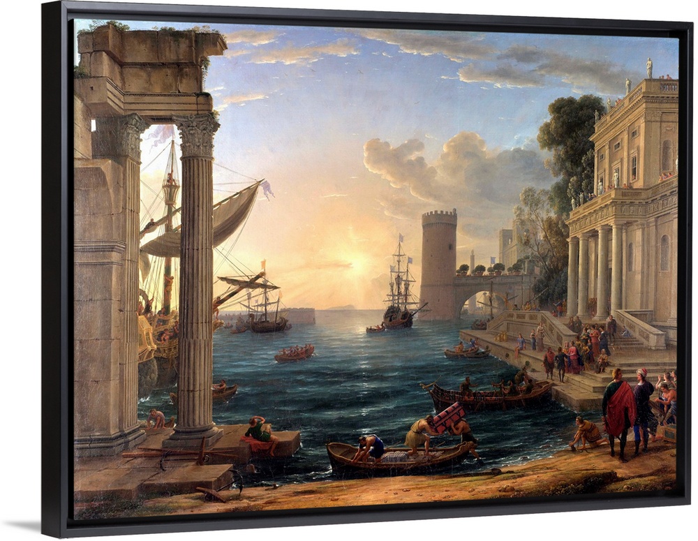 <p>Claude Lorrain (French, 1600-1682), Seaport with the Embarkation of the Queen of Sheba, 1648, oil on canvas, 194 x 149 cms / 76.4 x 58.7 inches, National Gallery, London.</p>