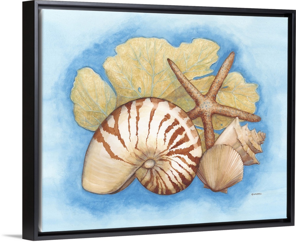 Art Beach House Décor Blue Wall Art Decorative Art Painting Wendy Russell Shells Wildlife Marine Life