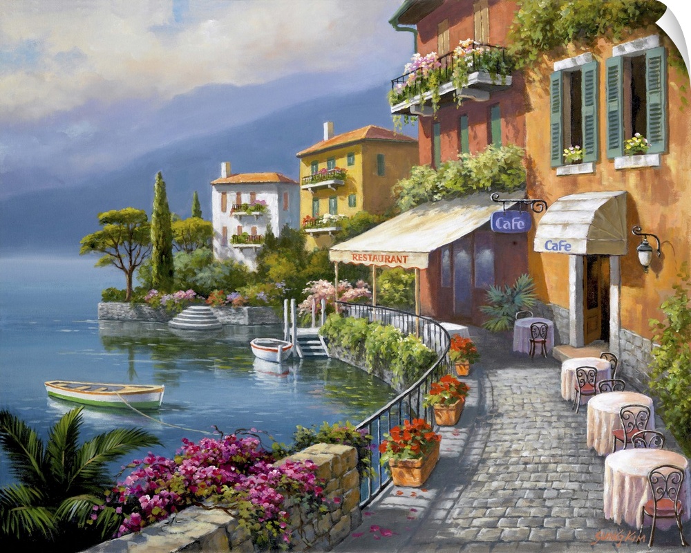 Art Traditional Cafe Cityscapes Contemporary Art Sung Kim Harbor Seascapes Painting